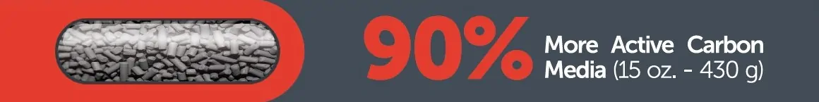 - 90% More Activated Carbon Media